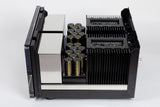The amplifier showcases an updated, yet unmistakable and distinctive Electrocompaniet design